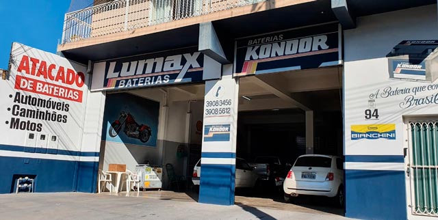 Há mais de 26 anos de tradição, a Lumax Bateriais é pioneira na distribuição autorizada de baterias Kondor em Presidente Prudente e Região. Trabalhamos com baterias para carro, moto, van e caminhão.