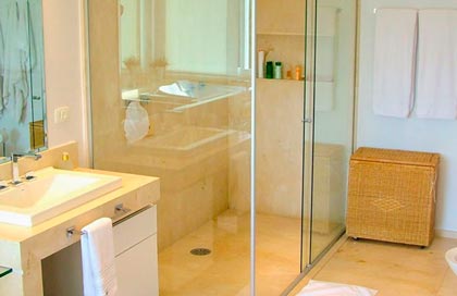 Evite que a água esguichada pelo chuveiro durante o banho se espalhe pelo banheiro.